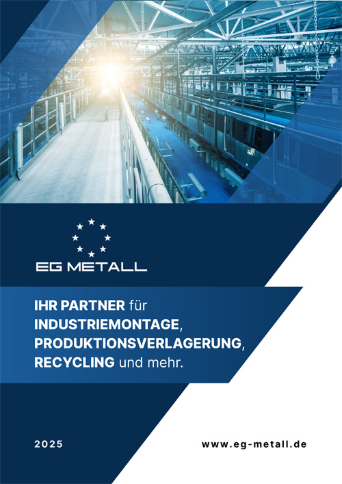 Die EG Metall GmbH steht für professionelle Industriemontage, Metallverarbeitung und technische Dienstleistungen im industriellen Umfeld. Mit langjähriger Erfahrung und einem hohen Anspruch an Qualität und Präzision unterstützen wir Unternehmen bei der Umsetzung unterschiedlichster Projekte – zuverlässig, effizient und strukturiert.